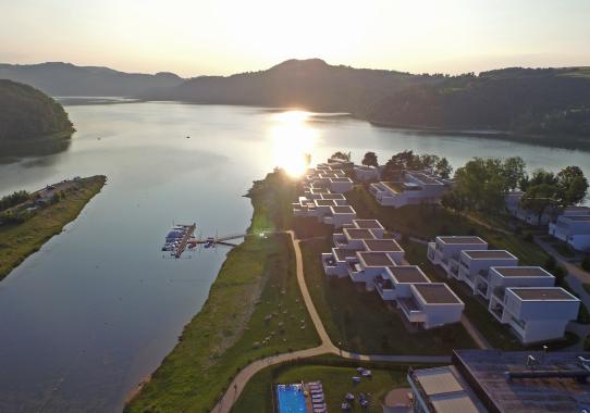 W strefie kompleksu znajdują się takie atrakcje jak: Luksusowe dwa baseny (jeden zewnętrzny z brodzikiem, oraz z mini Aquaparkiem dla dzieci, drugi kryty z jacuzzi) z widokiem na jezioro, siłownia, sala fitness, sauny (fińska, mokra i turecka), tężnia solna, balijskie MANAW*SPA, squash, kręgielnia, sala gier (bilard, dart, ice*hockey, piłkarzyki, flipery, konsola x-box), sala konferencyjna, restauracja, kawiarnia, drink bar, pizzeria, wydzielone kąpielisko, plac zabaw dla dzieci, przystań jachtowa (marina), boisko do piłki nożnej, oraz do siatkówki plażowej.